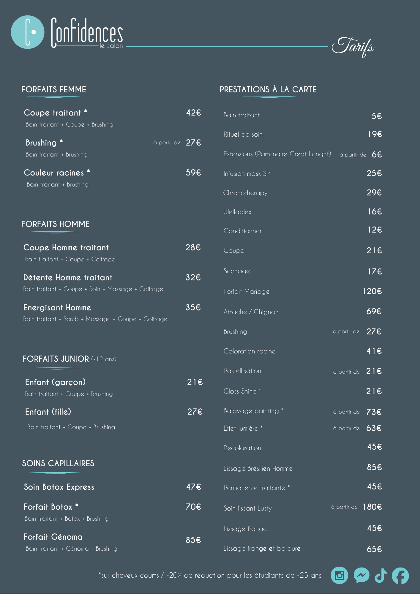 Tarifs des prestations coiffure